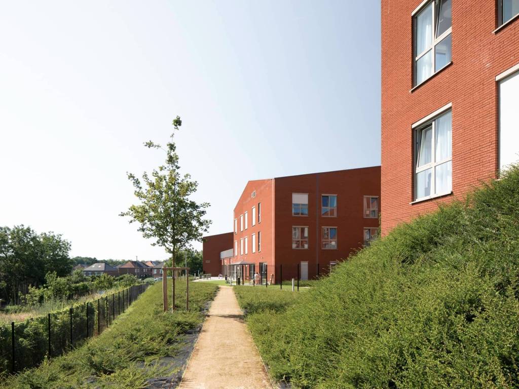 Le projet propose une grande diversité d’espaces extérieurs, pensés comme une extension du cadre de vie : jardins d’activités (pétanque, potager, ruches, espaces thérapeutiques) et paysages dédiés au bien-être (prairie fleurie, parcours sensoriel, verger, pièce d’eau, promenade en boucle). L’ensemble structure un cheminement piéton continu reliant le centre du quartier.